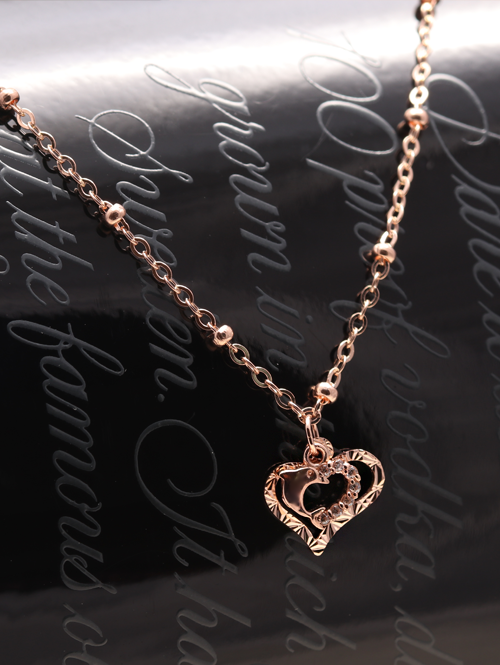 볼륨감있는 써클 체인에 하트와 큐빅참 장식이 믹스된 감각적인 발찌