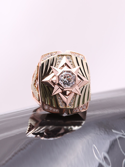 용의 겉표면을 표연한듯한 옆면 밴드가 매력적인 화려한 디자인의 반지입니다