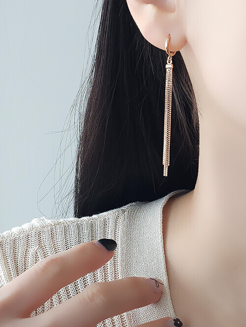 • 네 줄의 박스체인이 귓볼 아래로 롱하게 내려오는 스타일리시하고 청순한 드롭 귀걸이