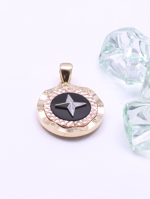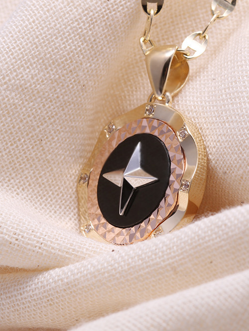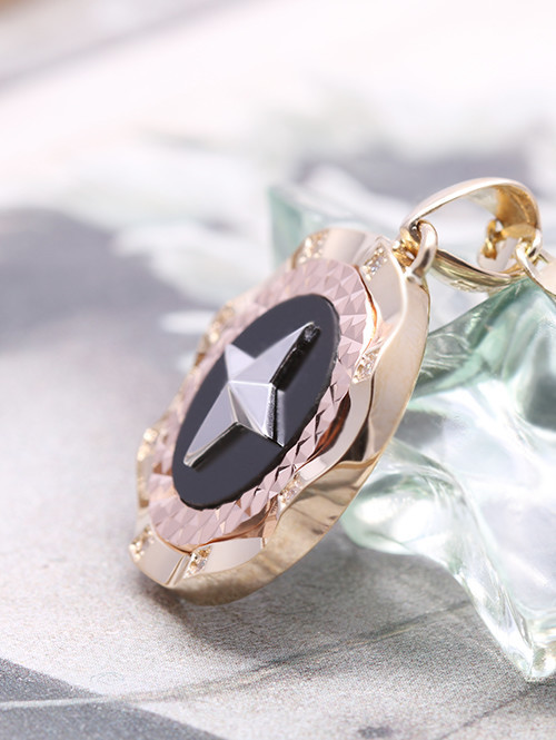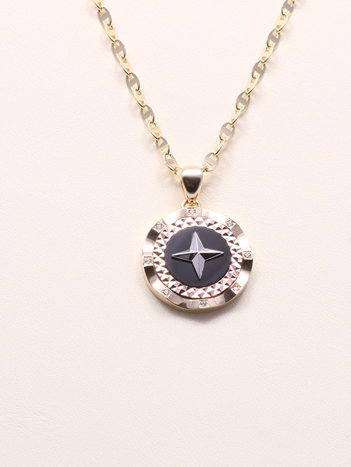 • 감각적인 블랙의 오닉스와 볼륨감 넘치는 프레임에 화려한 조각 컷팅된 핑크골드의 조화가 돋보이는 럭셔리한 오닉스 팬던트입니다