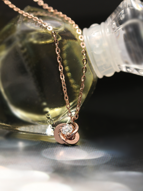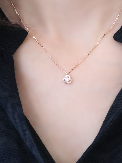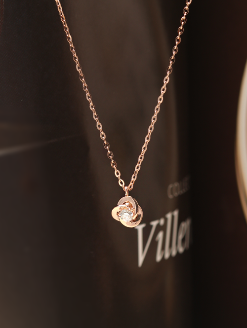 • 입체적인 플라워 디자인에 가운데 1부 다이아가 콕 세팅되어있는 목걸이