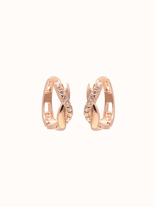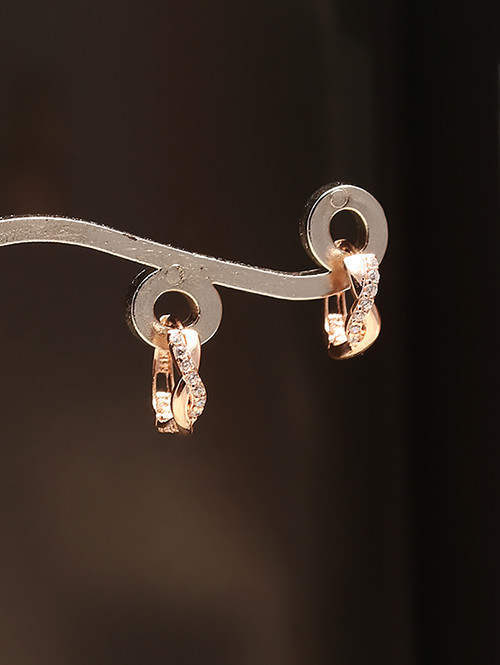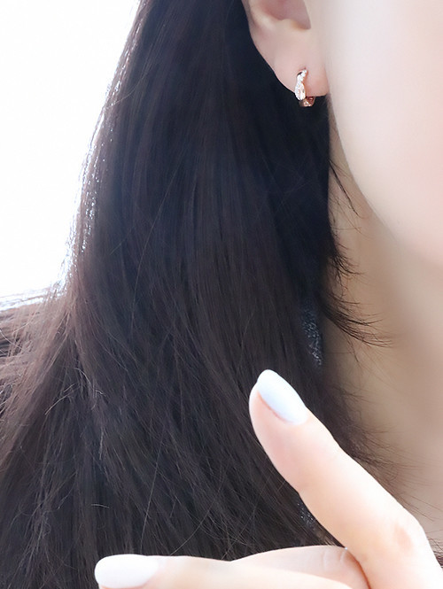 • 민자 라인과 큐빅이 촘촘하게 세팅된 라인이 서로 꽈베기처럼 엉겨있는 세련된 디자인의 귀걸이