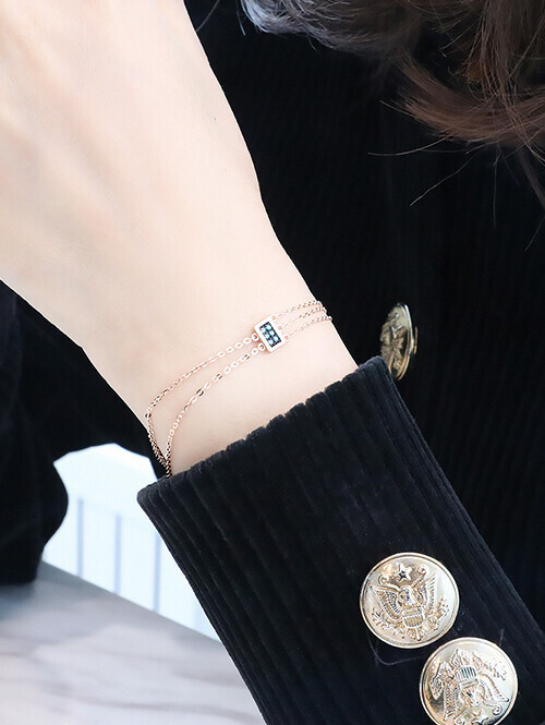 • 사각프레임에 청다이아가 세팅되어있는 언발 체인 팔찌