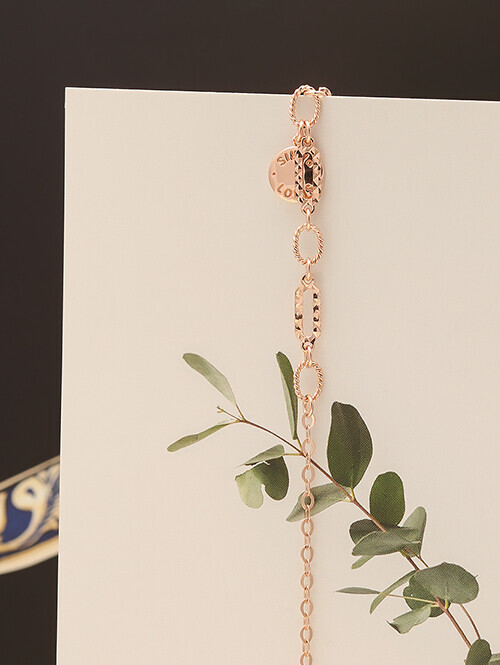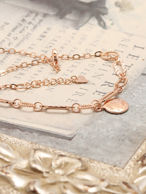 • 로프링과 컷팅클립 쉐입의 체인 그리고 써클 참이 메인으로 디자인된 발찌