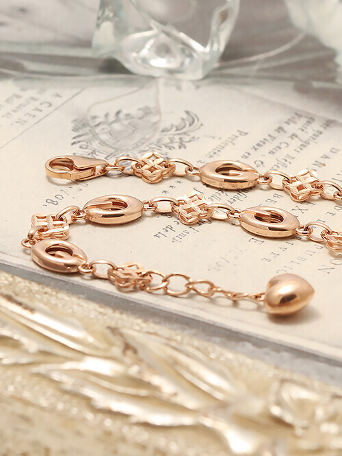 • 볼드한 G 쉐입 장식과 클로버 쉐입의 장식 체인으로 연결된 디자인의 팔찌