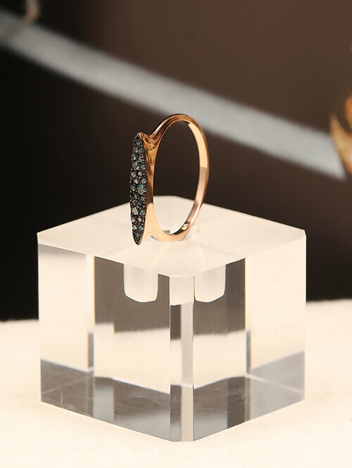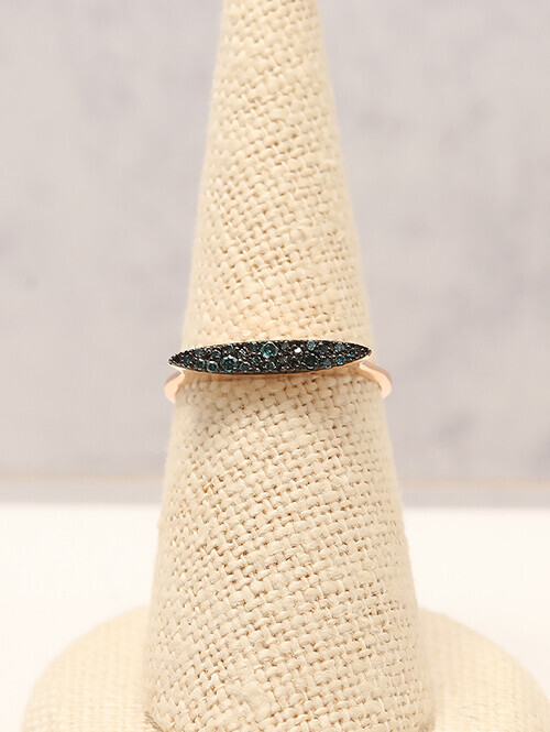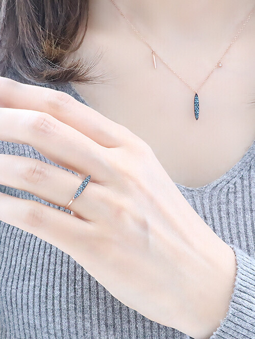 • 가느다란 타원형 쉐입에 청 다이아가 섬세하게 셋팅된 디자인의 반지