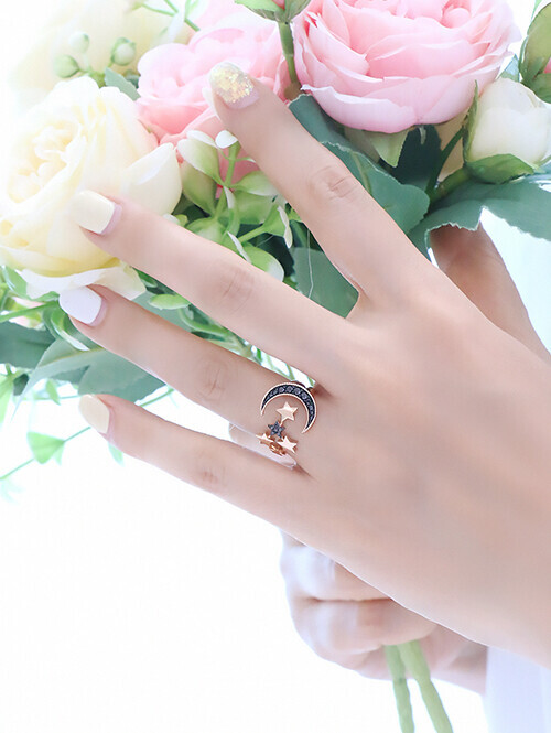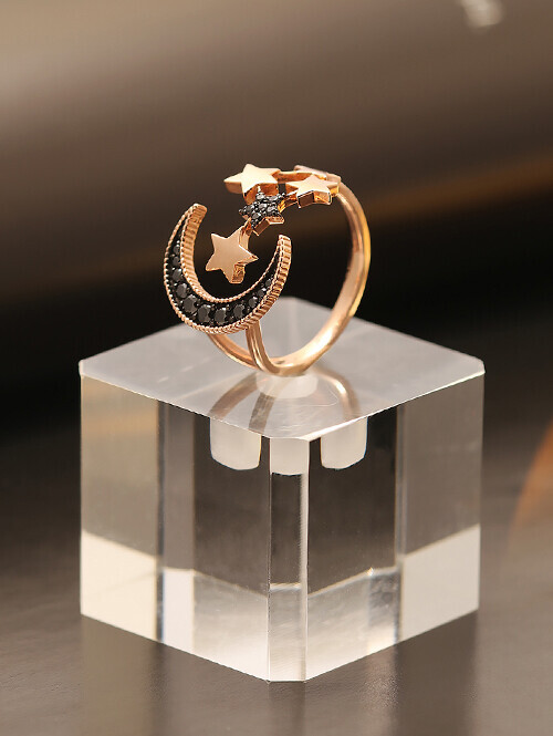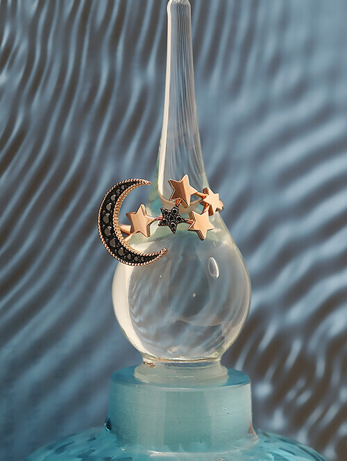 • 블랙 큐빅이 세팅된 달과 별이 어우러진 디자인의 반지