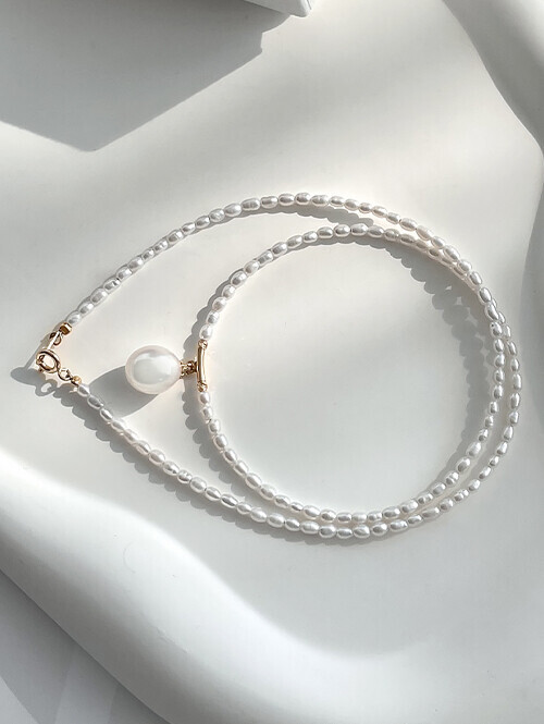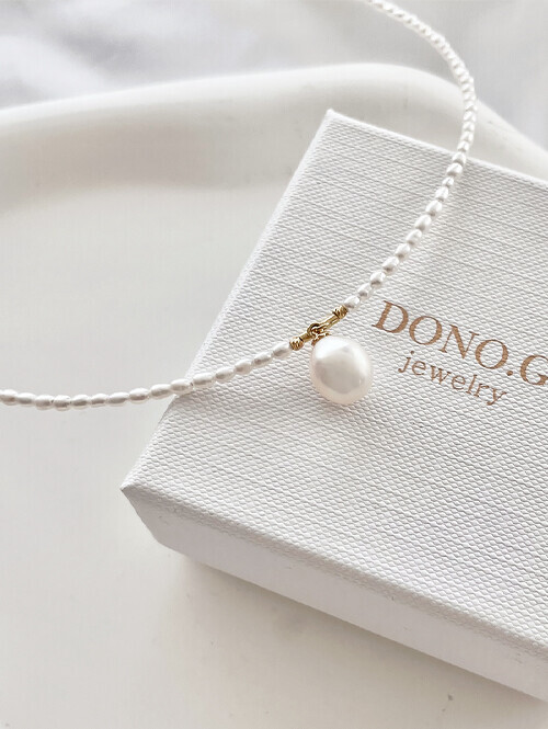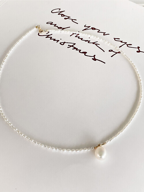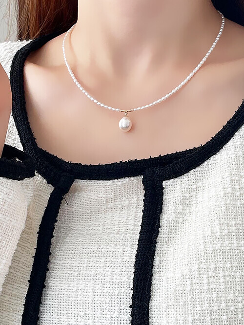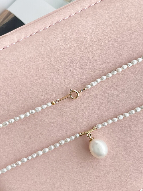 • 물방울 진주가 포인트로 세팅된 데일리 진주 비드 목걸이