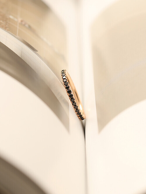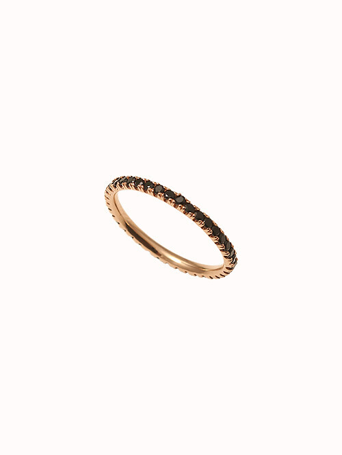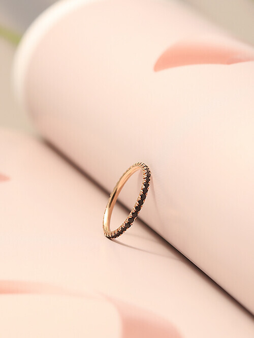 • 28개의 블랙 큐빅이 링 라인따라 세팅된 슬림한 디자인의 반지