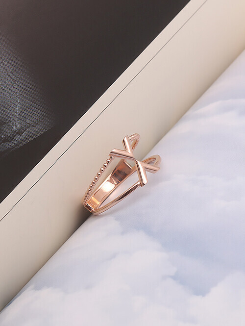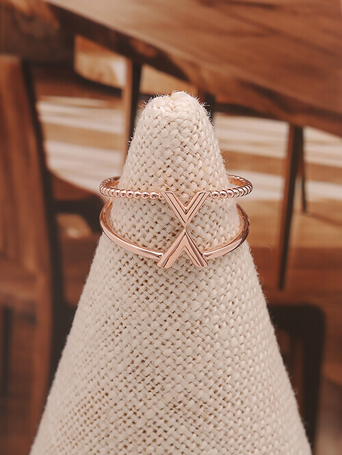 • 깔끔한 민자 V 쉐입 장식이 위아래로 매치된 디자인의 반지