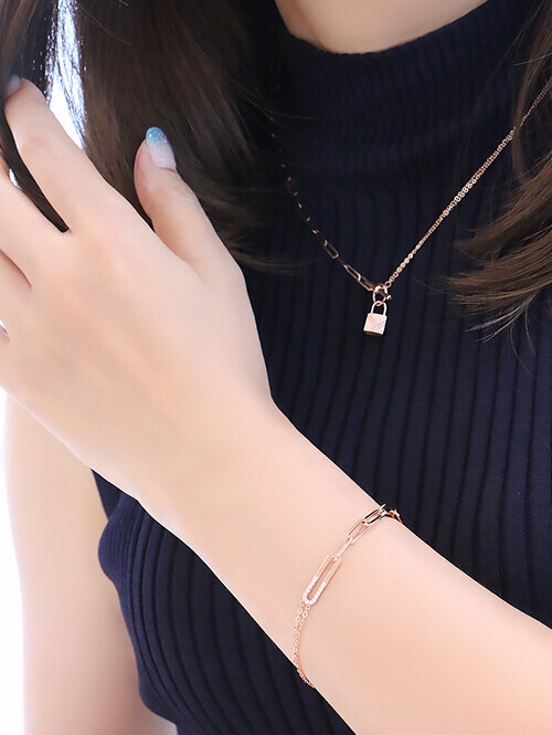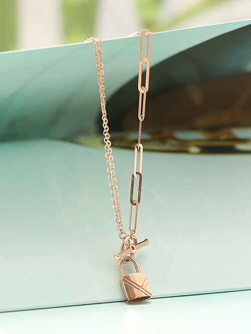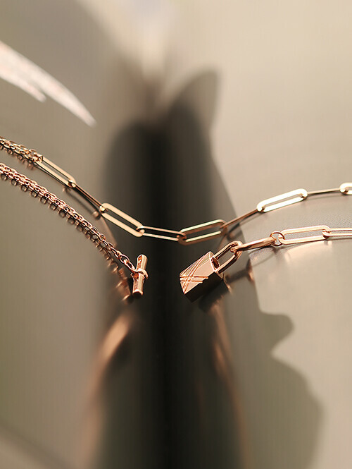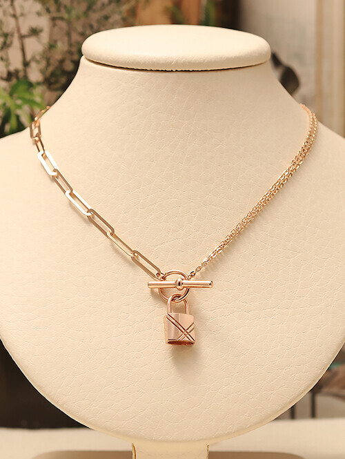 • 자물쇠 메달을 중심으로 양옆 언발 디자인의 체인 목걸이