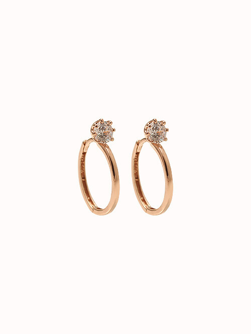 • 슬림한 링에 약 4.5mm 큐빅이 세팅된 심플한 귀걸이