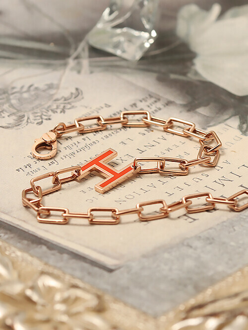 • 사각 사슬체인과 멋스러운 에폭시 이니셜 장식이 메인으로 자리한 팔찌