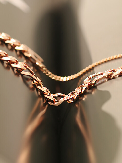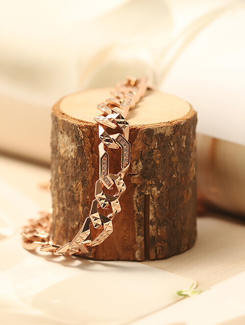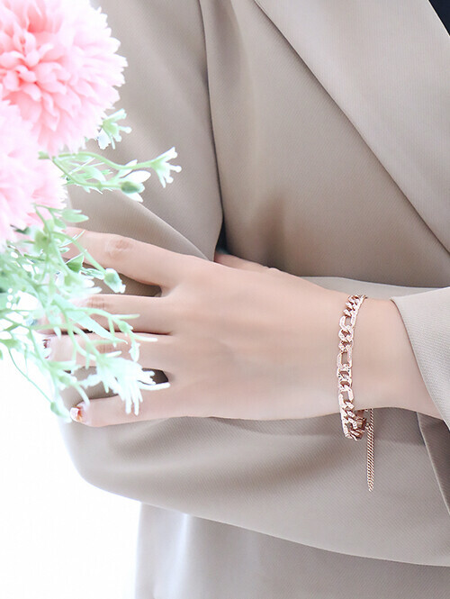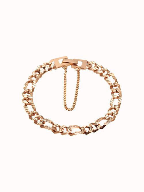 • 조각 컷팅 무늬가 들어간 각진 쉐입이 돋보이는 디자인의 팔찌