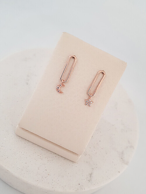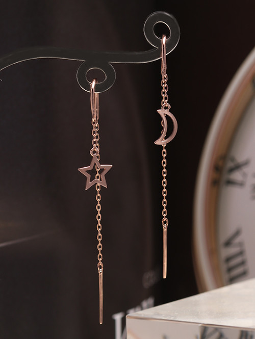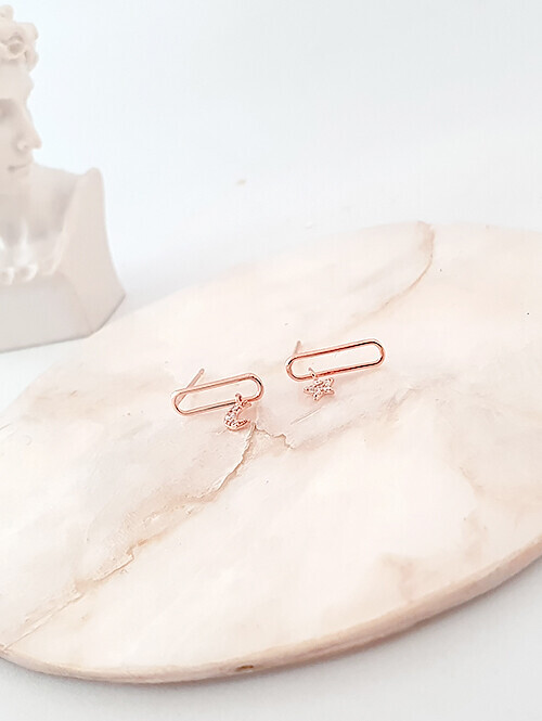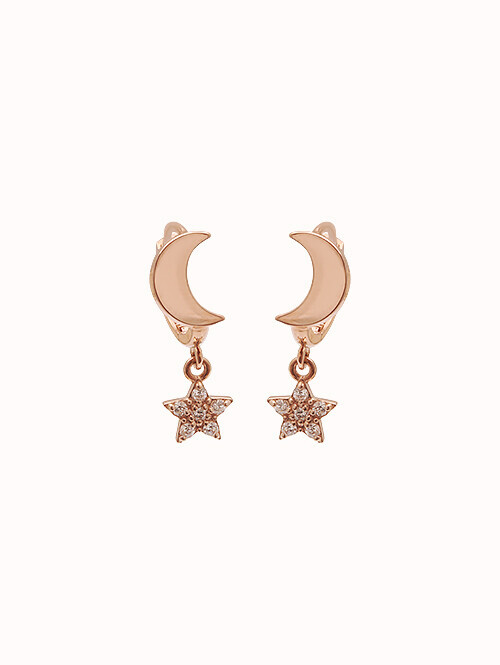 • 슬림한 클립 쉐입 아래로 달과 별이 딸랑이는 언발 귀걸이