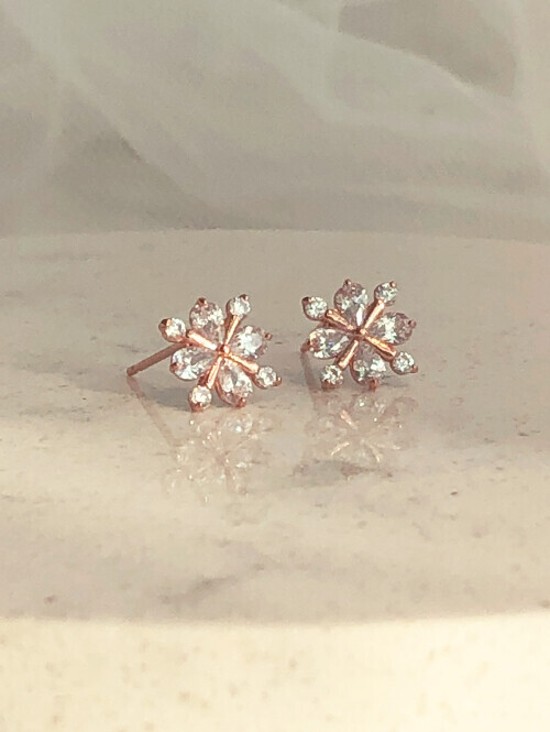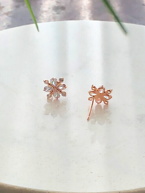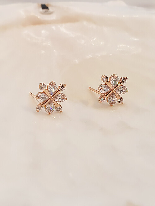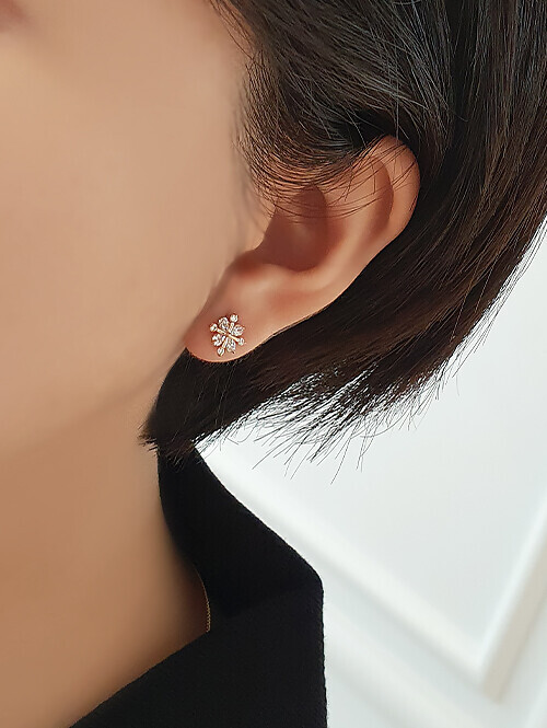 • 큐빅이 모여 눈꽃 결정을 이루고 있는 감성적인 핀귀걸이