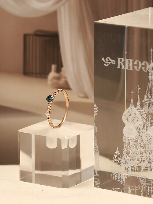 • 엠보 링 위로 7개의 청 큐빅이 메인으로 세팅된 디자인의 반지