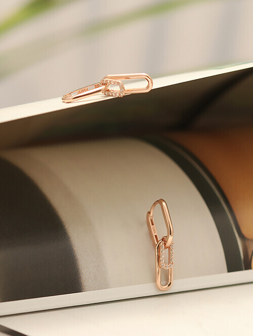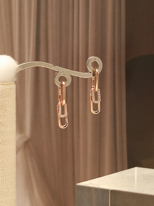 • 클립형 원터치 바디 아래로 두개의 클립 장식이 매치된 귀걸이
