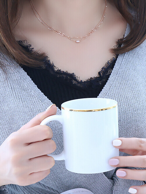 • 원통 쉐입을 메인으로 2종류의 체인이 믹스된 목걸이