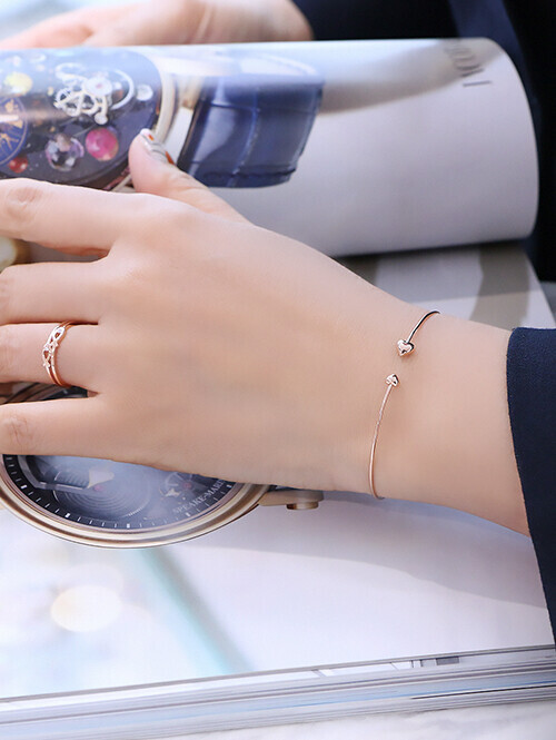 • 링 양 끝에 러블리한 하트 쉐입이 매치된 뱅글 팔찌