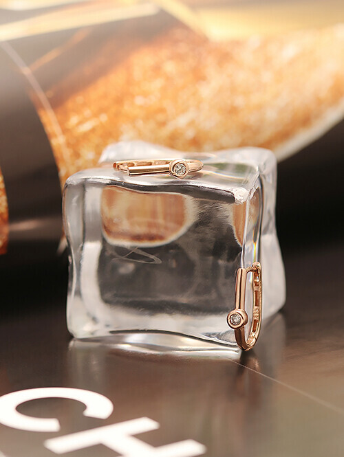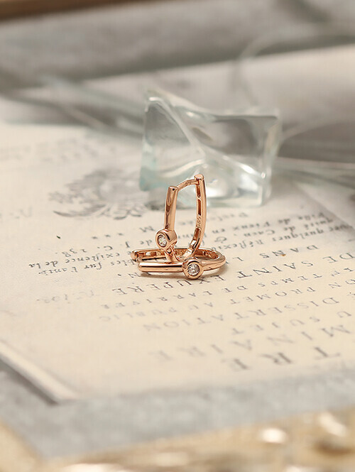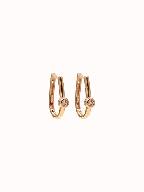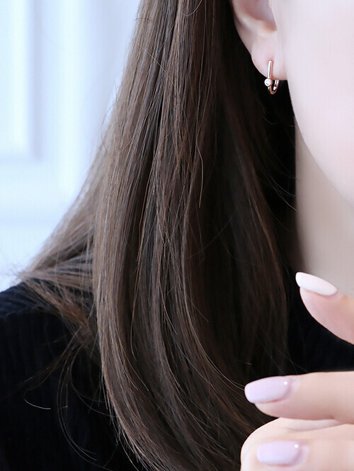 • U자형 라운드 귀걸이에 포인트 화이트 큐빅을 세팅한 귀걸이