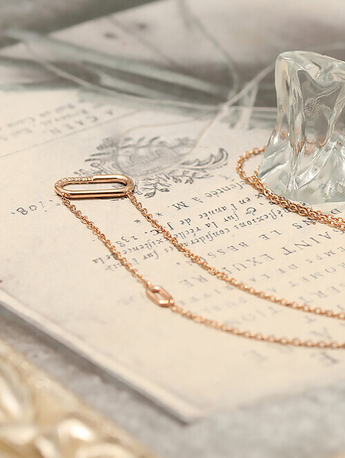 • 화이트 큐빅이 포인트로 세팅된 클립 쉐입 목걸이