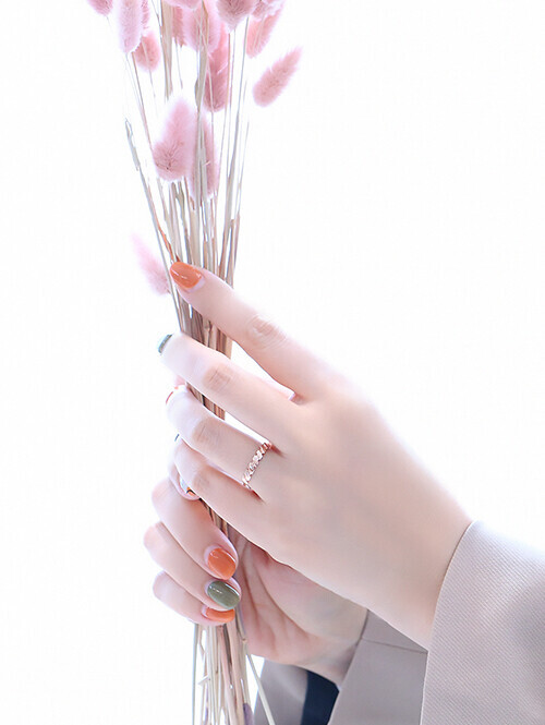 • 민자 스퀘어 쉐입이 일렬로 나열된 반지