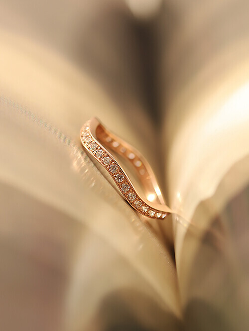 • 부드러운 웨이브 라인을 따라 화이트 큐빅이 세팅된 반지