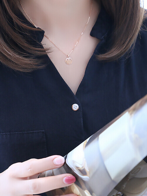 • 민자 써클에 귀여운 스마일 표정이 펀칭된 데일리 목걸이