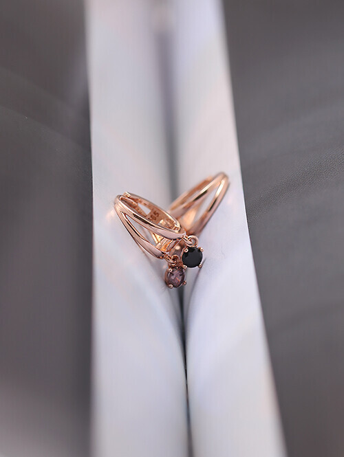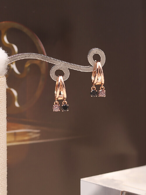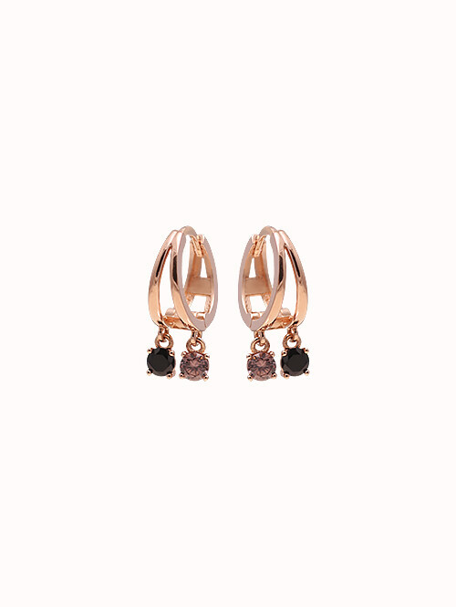 • 블랙 큐빅과 꼬냑 큐빅이 함께 딸랑이는 두줄 귀걸이