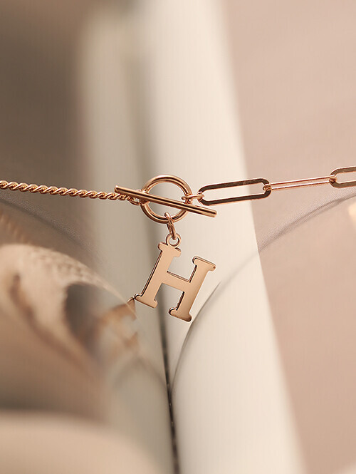 • 토글바 장식과 영문 이니셜이 딸랑이는 믹스 체인 발찌