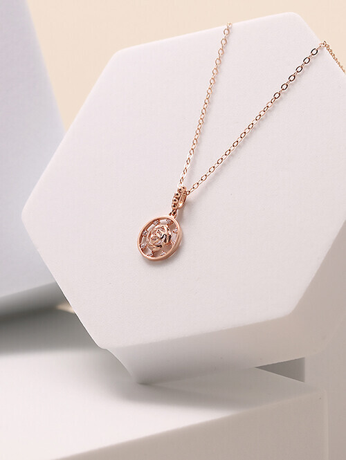 • 장미 쉐입을 중심으로 화이트 큐빅이 둘러진 펜던트