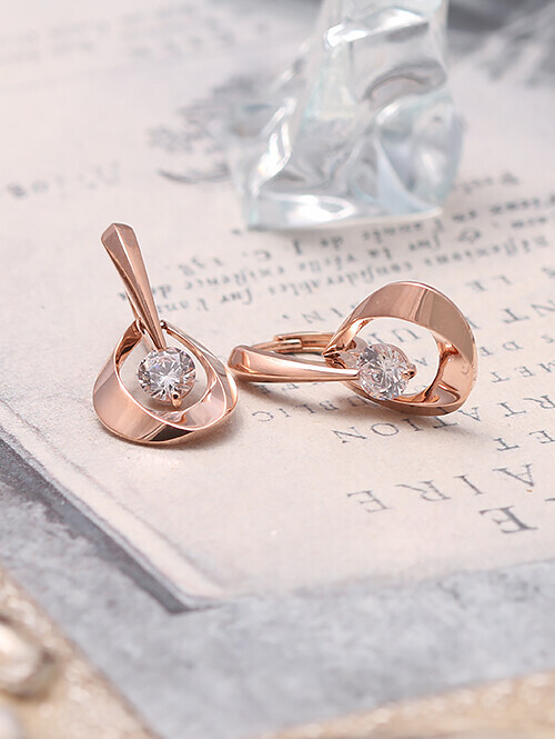 • 물방울 써클 쉐입 안쪽으로 화이트 큐빅이 반짝이는 귀걸이