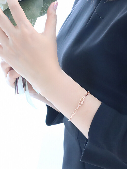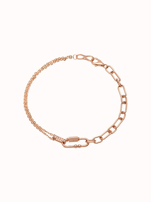• 클립 볼 쉐입에 육각 오브제가 연결된 트렌디한 언발 팔찌
