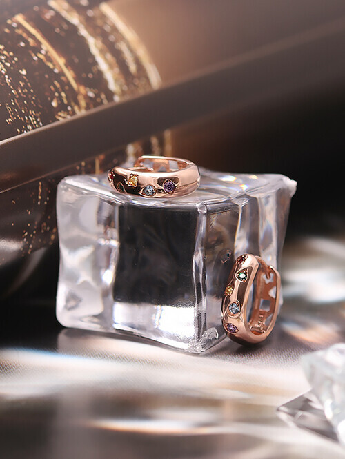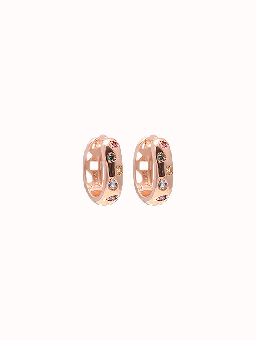 • 다양한 도형 펀칭과 컬러큐빅이 세팅된 링귀걸이