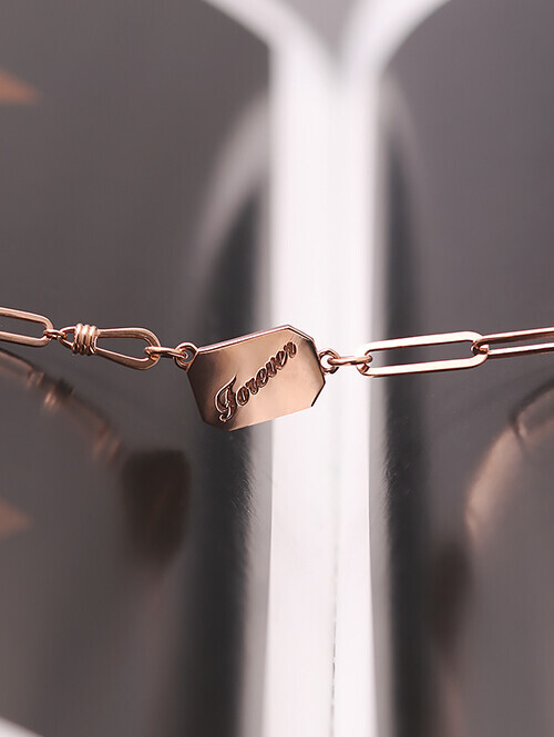 • 스퀘어 쉐입에 멋스러운 Forever 각인이 새겨진 클립 목걸이