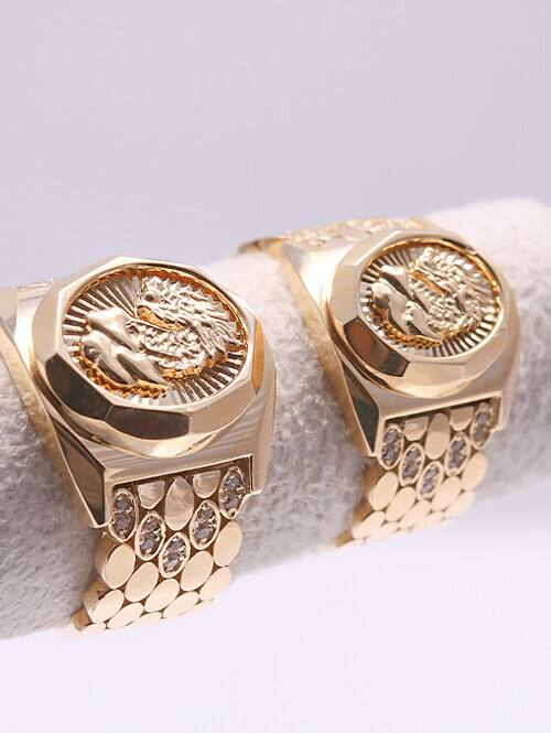 • 용의 겉표면을 표연한듯한 옆면 밴드가 매력적인 화려한 디자인의 반지입니다