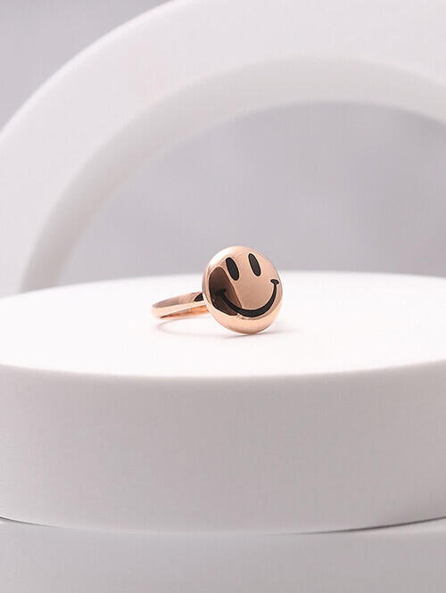 • 볼드한 써클 쉐입 위로 스마일 표정이 그려진 반지