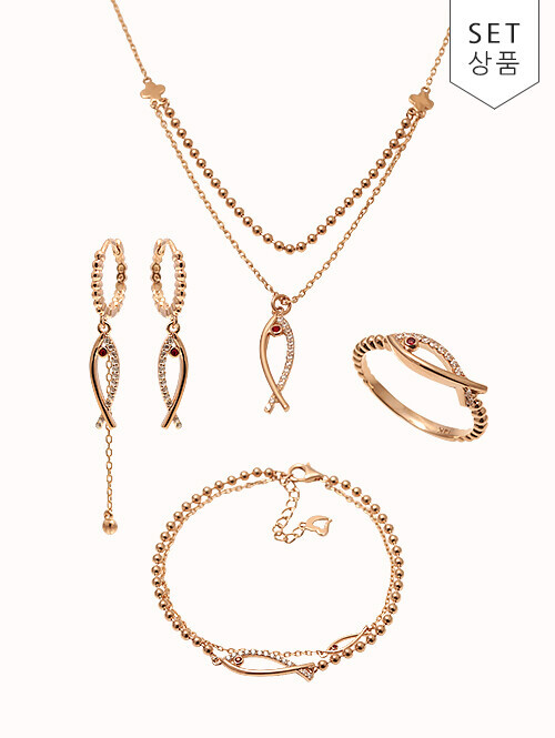 • 티아라를 착용한 물고기 눈에 루비큐빅이 세팅된 행운반지