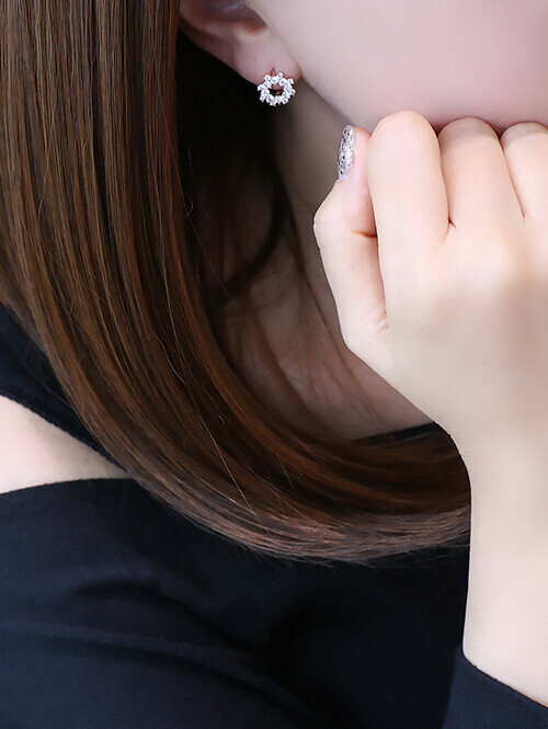 • 큐빅이 모여 플라워 쉐입을 형상화 한 귀걸이