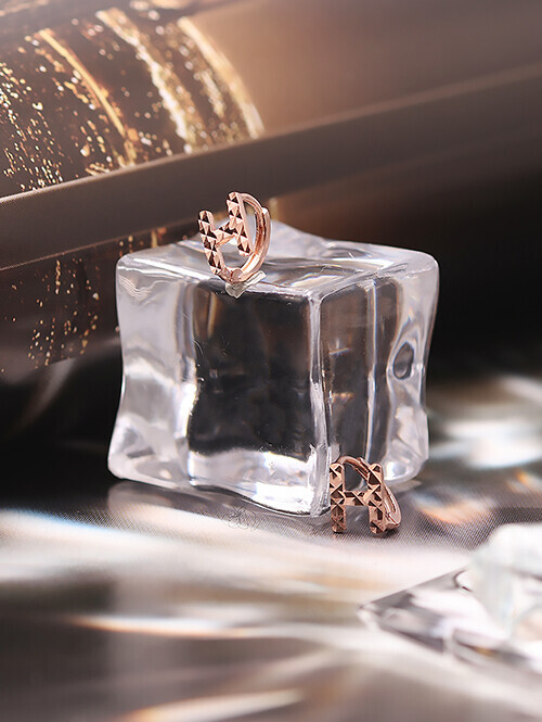 • 라운드 H 쉐입에 반짝이는 컷팅 패턴이 더해진 귀걸이