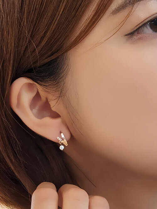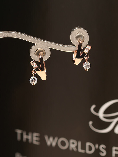 • 센스있는 V 쉐입에 큐빅이 딸랑이는 캐주얼한 무드의 귀걸이