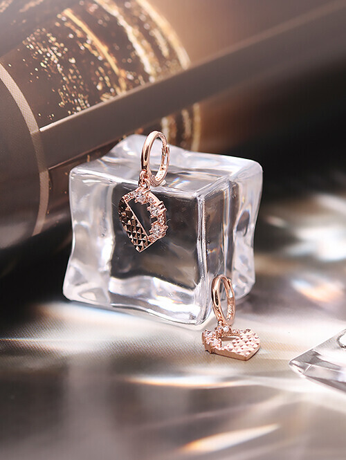 • 나뭇잎 쉐입 위 아래로 큐빅과 컷팅 패턴이 더해진 귀걸이