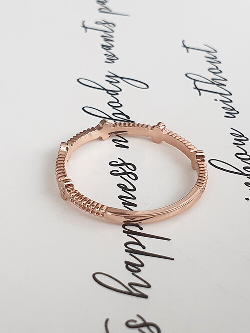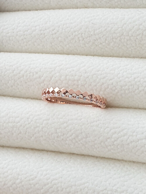 • 마름모 라인과 큐빅 라인이 두 줄로 레이어드 된 반지