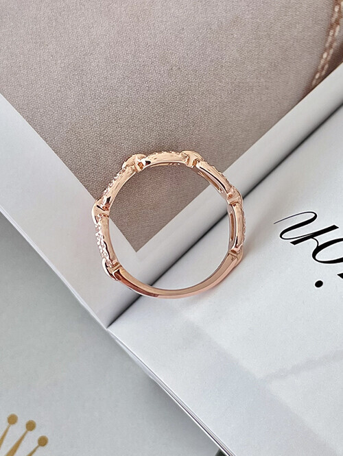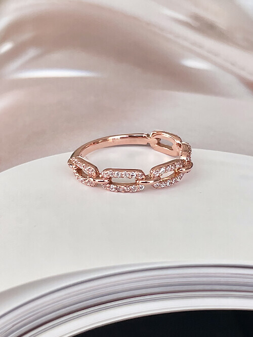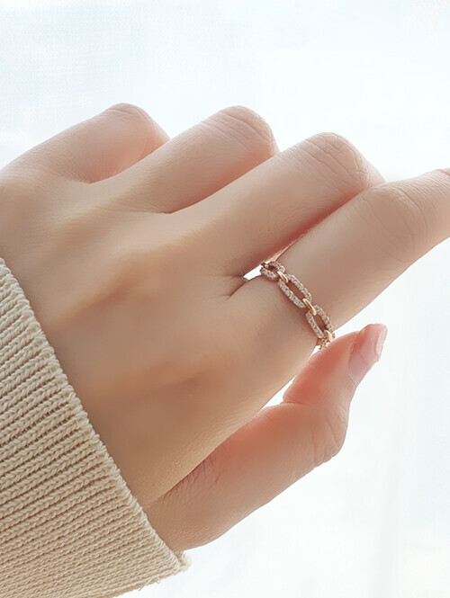 • 라운드 클립 체인 쉐입에 글로시한 큐빅이 촘촘히 세팅된 반지