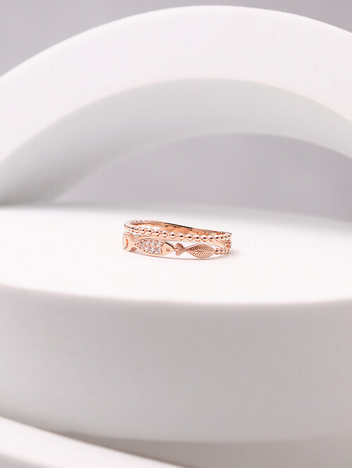 • 행운의 물고기와 볼 라인이 두 줄로 매치된 스타일리시한 피쉬 반지