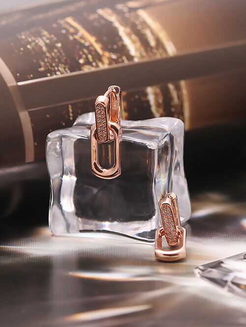 • 볼드한 두 개의 클립 쉐입이 위 아래로 연결된 고급스러운 귀걸이