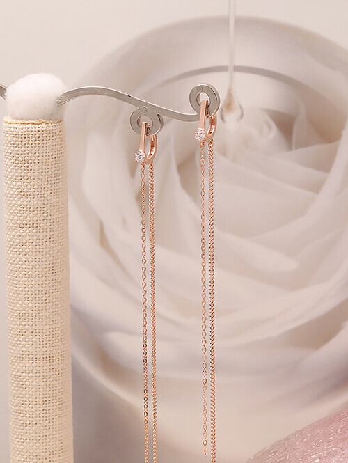 • 두줄 체인이 롱하게 드롭된 청순한 귀걸이