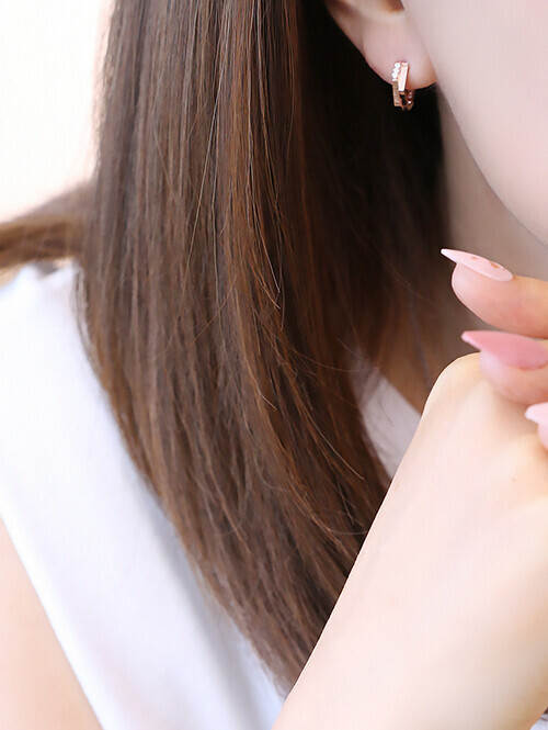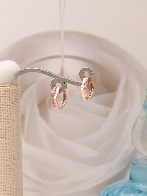 • 각진 두줄 라인에 화이트큐빅과 컷팅을 믹스한 귀걸이