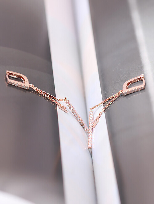 • 글로시한 큐빅 스틱과 스타일리시한 H 쉐입이 롱하게 드롭된 우아한 무드의 귀걸이